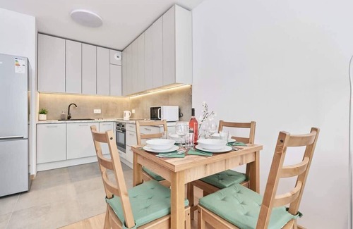 Located in a new, quiet neighbourhood, this apartment offers comfort and convenience during your stay in the city. Contactless key collection guarantees complete freedom when checking in and out. Private parking in the underground garage allows you to store your car safely. The balcony is the perfect place to relax after an eventful day. Free Wi-Fi allows you to stay in touch and enjoy unlimited online entertainment. The fully equipped kitchen allows you to prepare your own home-style meals. A free set of toiletries is provided for guests to make every stay even more comfortable. A VAT invoice for your stay is available on request.