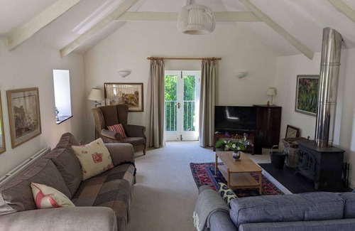Willow Mill and Little Barn are bordered by the River Amble and the village church of St James. The garden has lovely views of the church and if you are lucky you may hear the bells! The woodland area and stream are magical and great fun for exploring and den building. The stream will lead you to a lovely ford and footbridge. (Please see house rules regarding supervision of children and dogs within the grounds).The St Kew Inn is a very short walk away , a great pub serving local ales and delicious food.