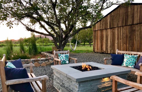 Perfectly located in the heart of the Sonoma Wine Country, this one-acre property is set amongst surrounding vineyards and mountains and is just steps to the town of Kenwood with access to numerous wine tasting rooms, restaurants and shopping. This Kenwood home is designed to maximize outdoor living and offers spectacular views in a fun and relaxed setting. Come enjoy swimming and sunbathing in the stunning contemporary pool and hot tub while soaking in the views of the surrounding lawns, fruit trees, and neighboring vineyard. Barbecue a meal and dine al fresco or relax in the shade of the charming wrap-around porch. In the evening, unwind under the moonlight and sit by the outdoor fire-pit to sip one of the delicious local wines.