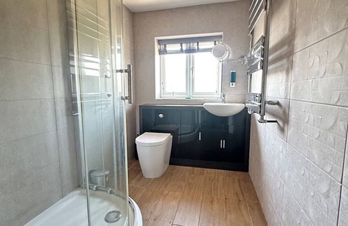 Modern 2-bedroom first-floor flat in Woking with double beds. Open-plan kitchen/living area fully equipped: oven, microwave, fridge, coffee machine, air fryer, toaster & basics. Washer/dryer included. Smart self check-in for easy access. Free designated parking for 1 vehicle. Just 5 mins from Woking centre by car. Quiet location near amenities. Ideal for professionals, contractors or leisure stays – clean, comfortable & convenient.