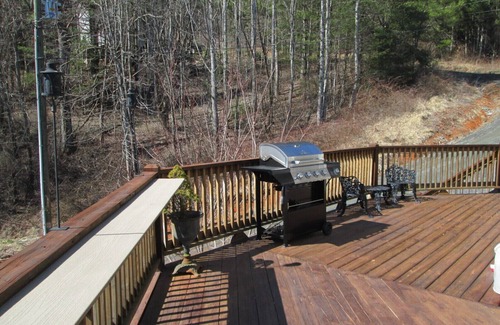 This townhouse is well furnished, comfortable and will make anyone feel right at home in the North Carolina mountains. The sound of the New River can be heard and the view of the mountains and Christmas Tree farms are a delight. 4 bedrooms, 3.5 baths, sleeps 9. Cable, internet, dish washer, washer, dryer. Jefferson Landing Golf Club is five minutes away. Ski resorts are forty-five minutes away.