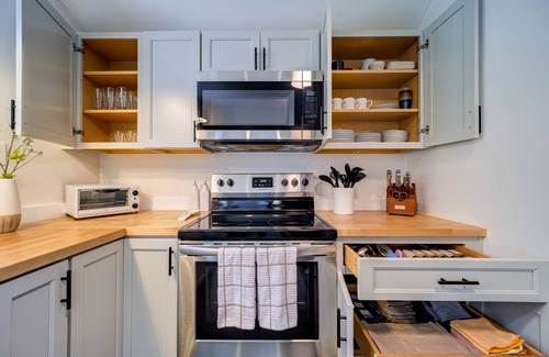 - Fully equipped kitchen with cookware, dishware, glassware, flatware, cooking utensils, mixing bowls, serving ware, salt, pepper, some herbs & spices.