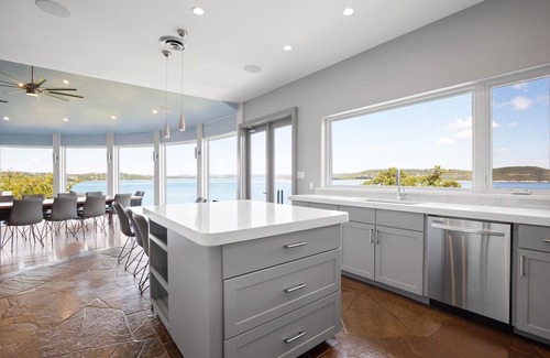 This unique waterfront home is situated high above beautiful Lake Travis. It sits on the south shore of the main basin which is the deepest part of the lake. When you walk through the front door and down the hall the 180 degree lake view will take your breath away! You can enjoy unforgettable sunsets from the house, pool, decks and dock.