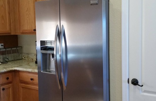 Our 3 bedroom, 2 bath home is fully equipped for your enjoyable stay. The large master bedroom has an on-suite bathroom with double sinks, large walk-in shower and king size bed. The walk-in closet has hangers and room for suitcases for unpacking for your stay. A beautiful oversize master bedroom dresser for your folded clothes if needed.