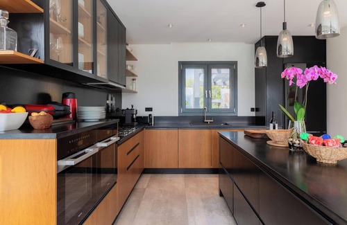 The villa boasts a unique irregular curved infinity pool, which is set slightly away from the villa, at the front of the property, perfect for a refreshing dip or simply lounging around. A complete outdoor dining area is the perfect place to enjoy sociable meals al fresco.